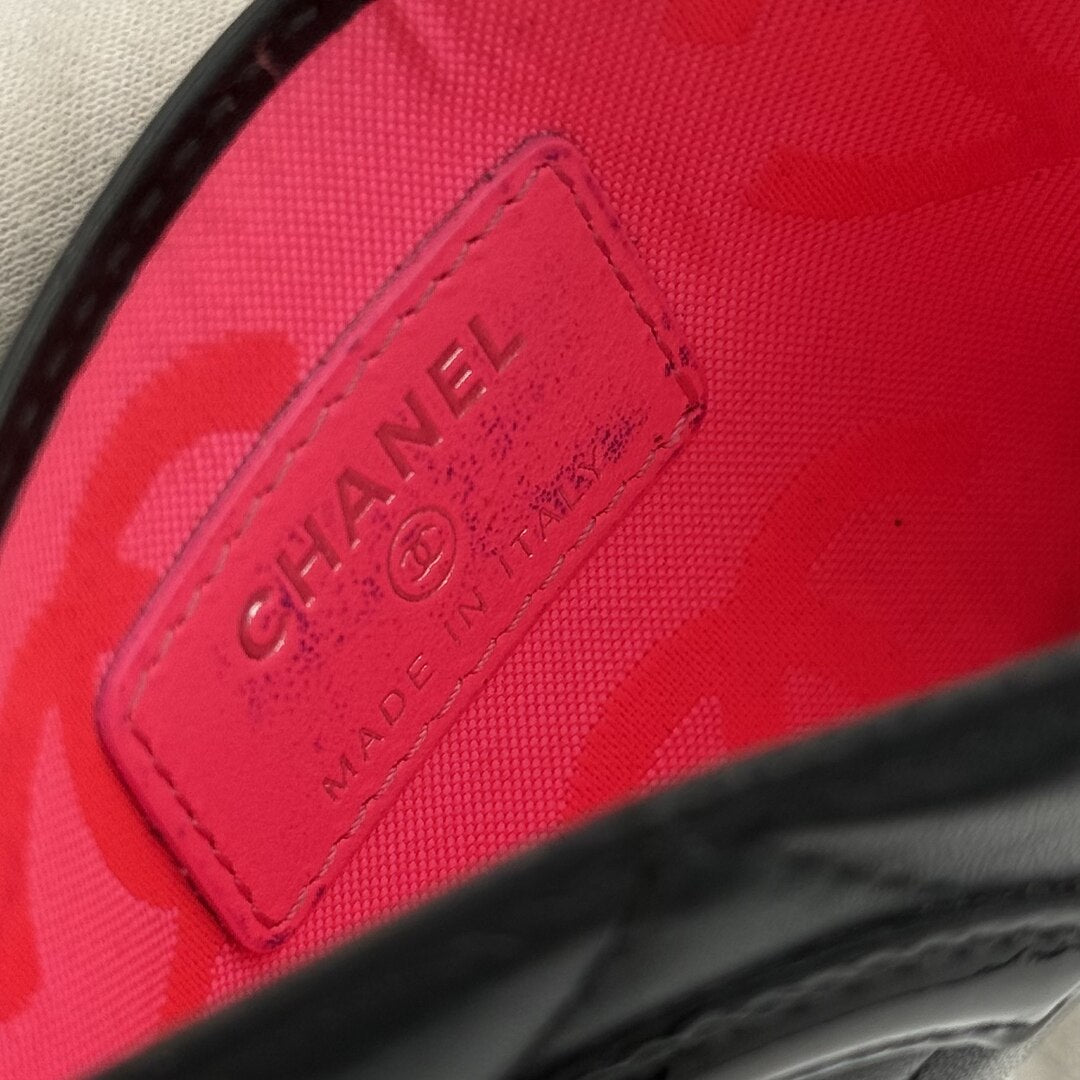 This 2006 Chanel CC Cambon wallet showcases luxurious black caviar leather with a distinctive large CC logo on the front. Designed as a bifold, it offers organised storage with multiple compartments for notes and cards, blending timeless elegance with practical functionality.