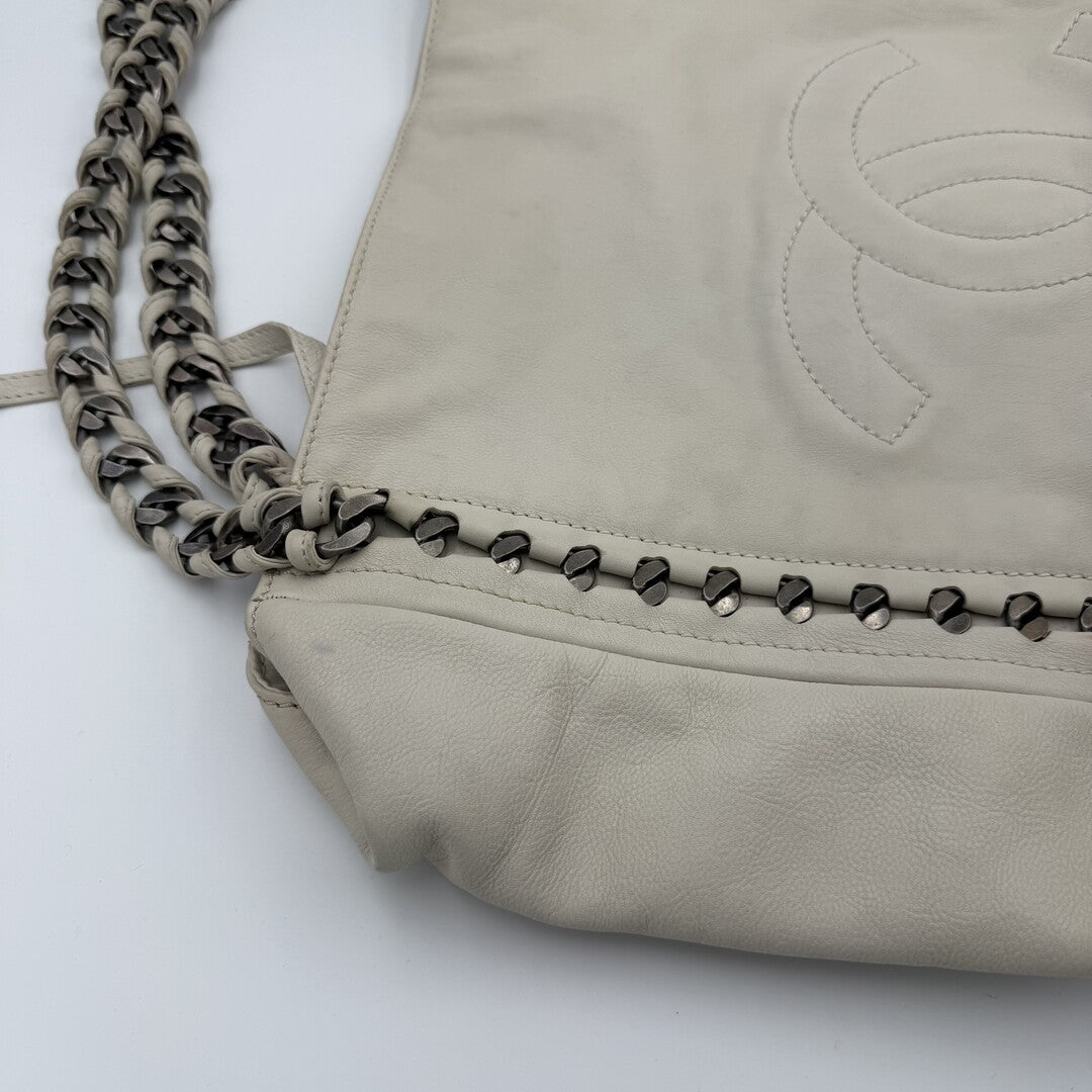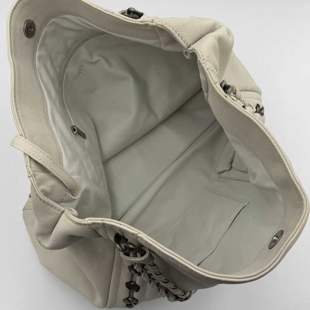 2006 Chanel CC Modern Chain White Leather Tote Bag