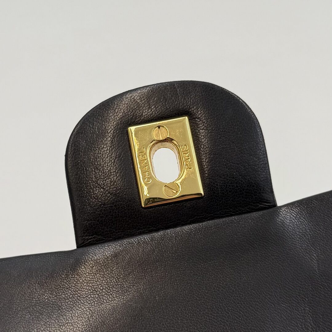 90s Chanel Matelasse Double Flap Chain 24K Gold Black Shoulder Bag