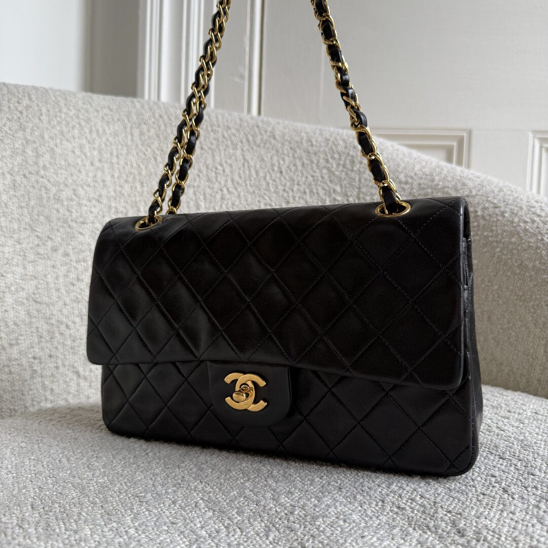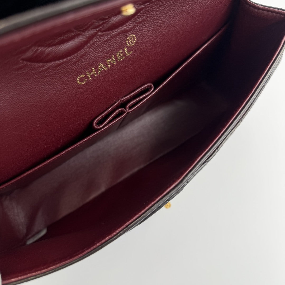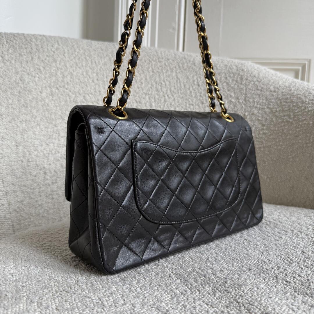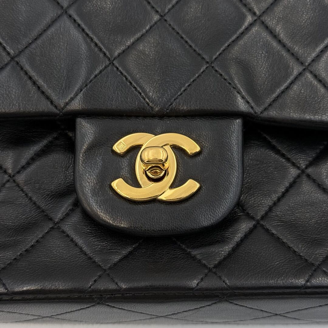 90s Chanel Matelasse Double Flap Chain 24K Gold Black Shoulder Bag