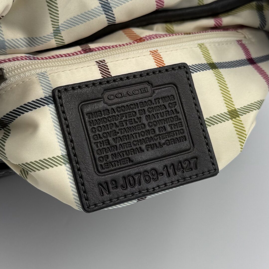 This Coach 1941 shoulder bag is expertly crafted with black leather and accented with a bold Coach logo engraving on the front. The gold hardware adds a touch of elegance, while the buckle compartment and zip up pocket inside provide convenient storage options. Upgrade your style with this versatile and luxurious bag.