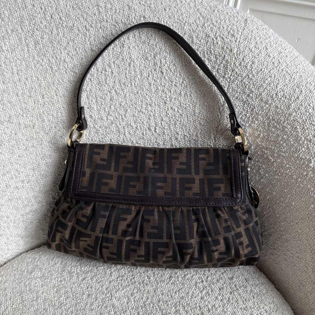 Fendi Zucca Flap Brown Shoulder Bag