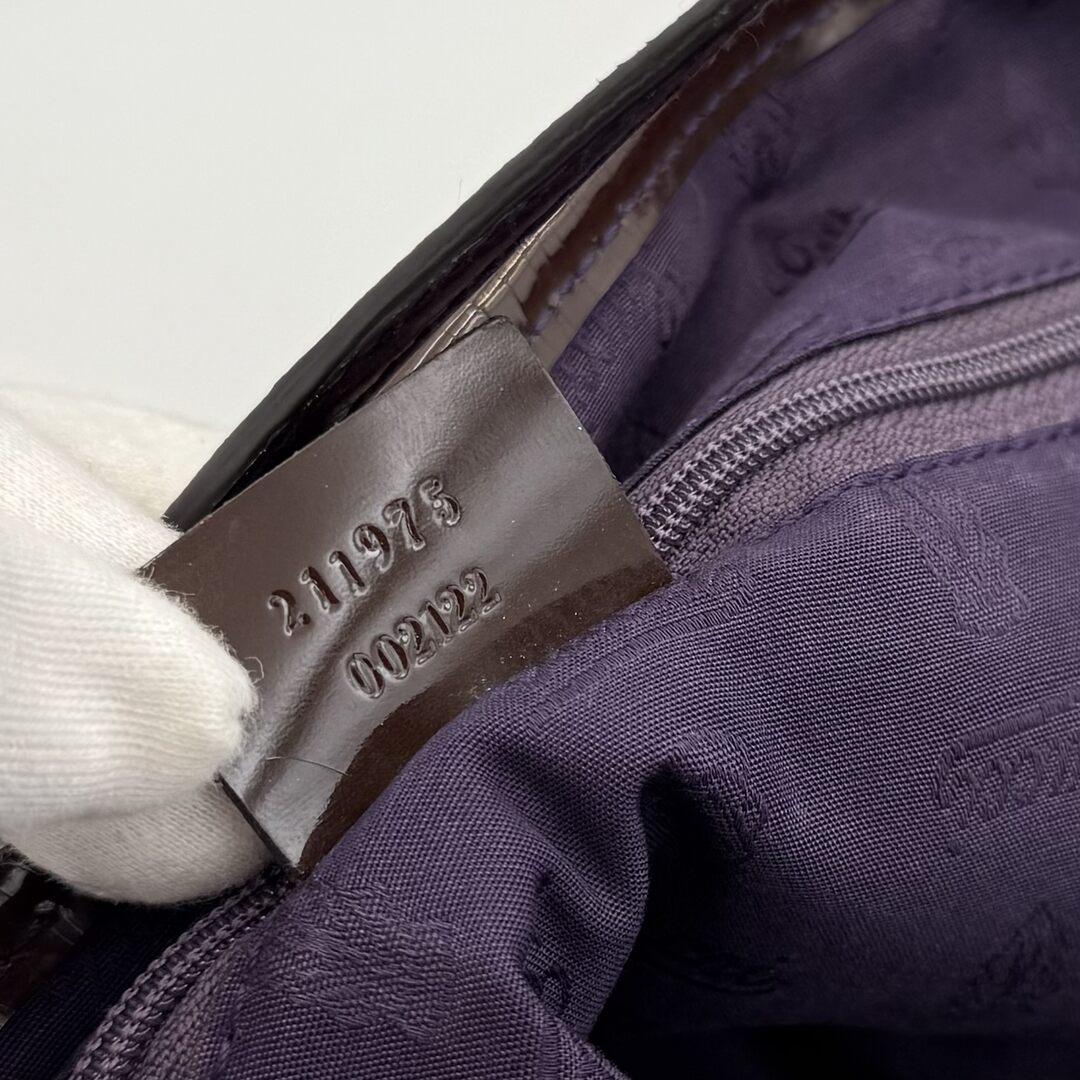 The Gucci GG Canvas Jolie Brown Tote Bag features the iconic beige monogram canvas paired with sleek black enamel leather accents. This elegant tote includes a charm detail and an open top design, with a secure zip-up pocket inside to keep essentials organised. Perfect for combining timeless style with practical functionality.
