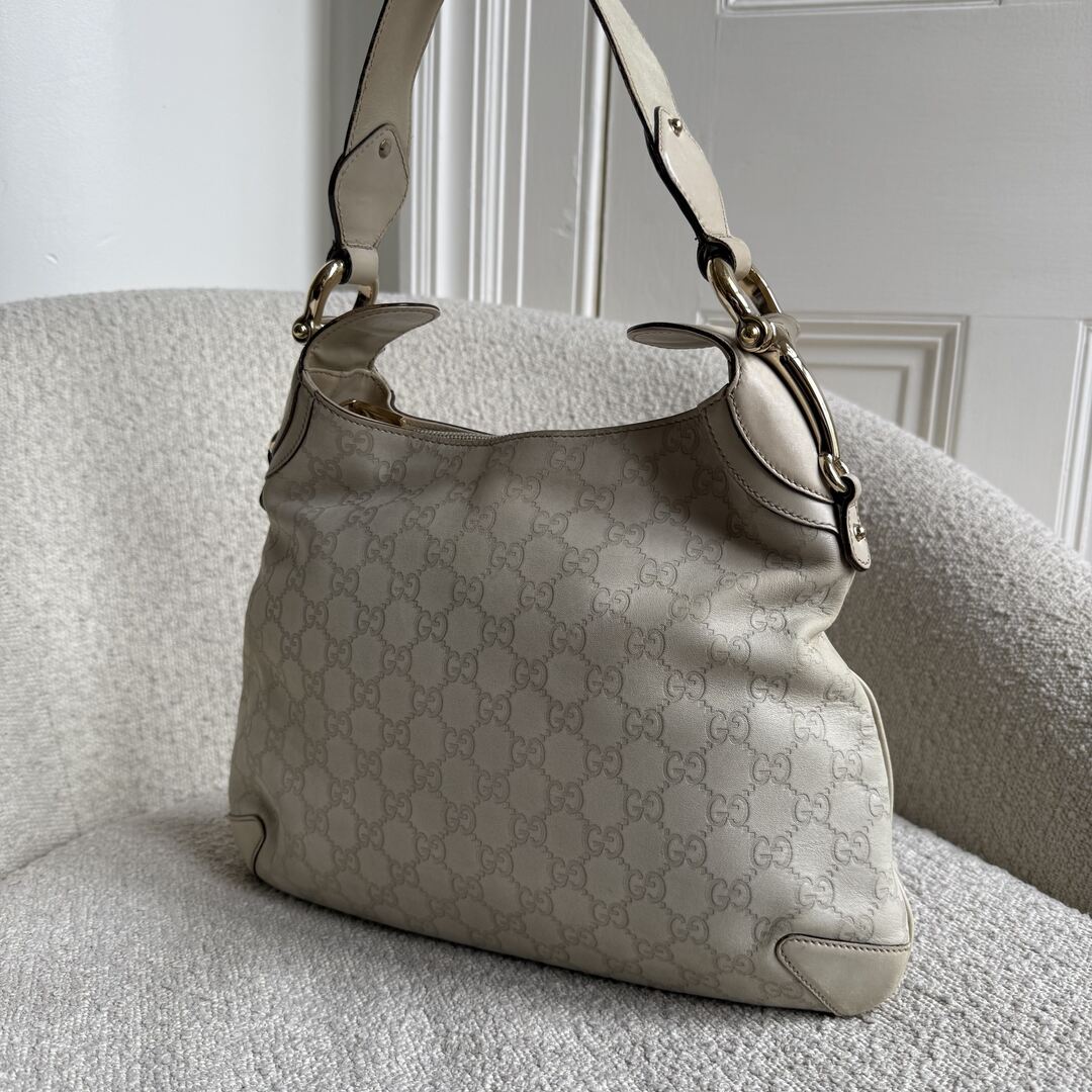 Gucci Guccissima GG Horsebit Cream Shoulder Bag