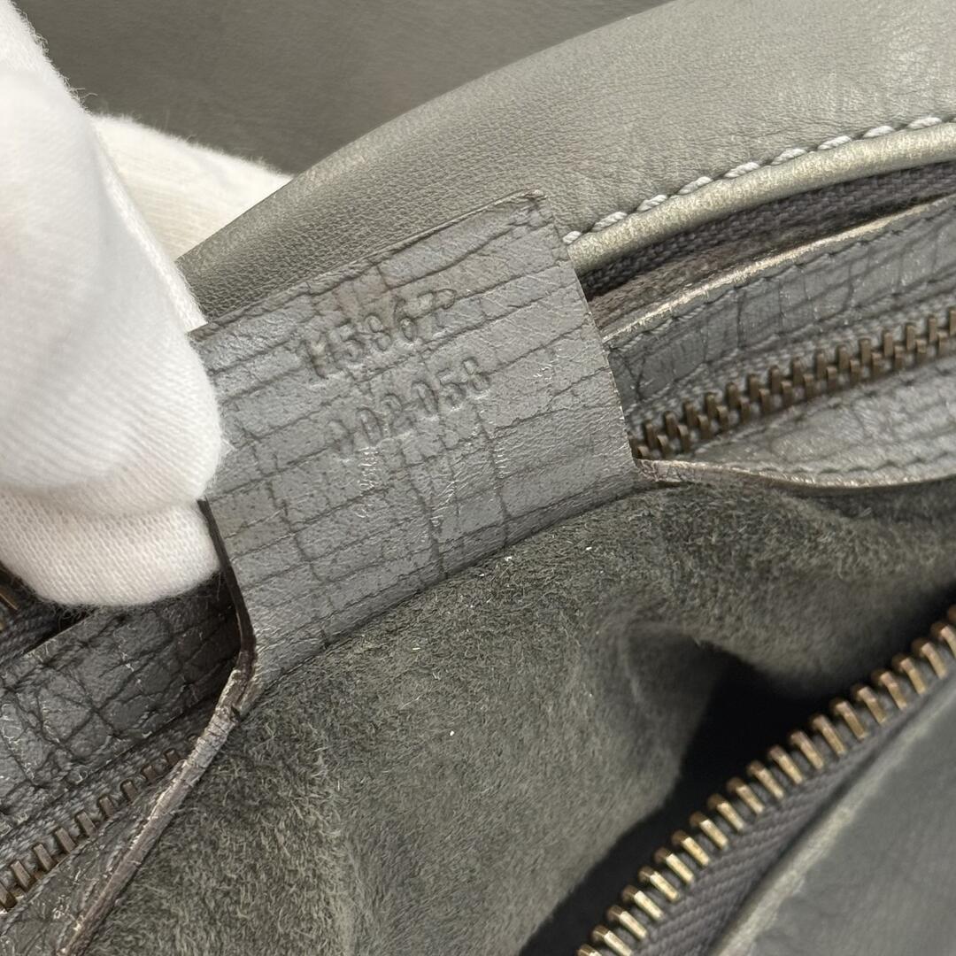 Expertly crafted from luxurious grey leather, the Gucci Horsebit Shoulder Bag exudes sophistication. Its iconic horsebit buckle detailing adds a timeless elegance, while the gold hardware provides a touch of luxury. With a convenient zip up compartment, this bag is both stylish and functional.