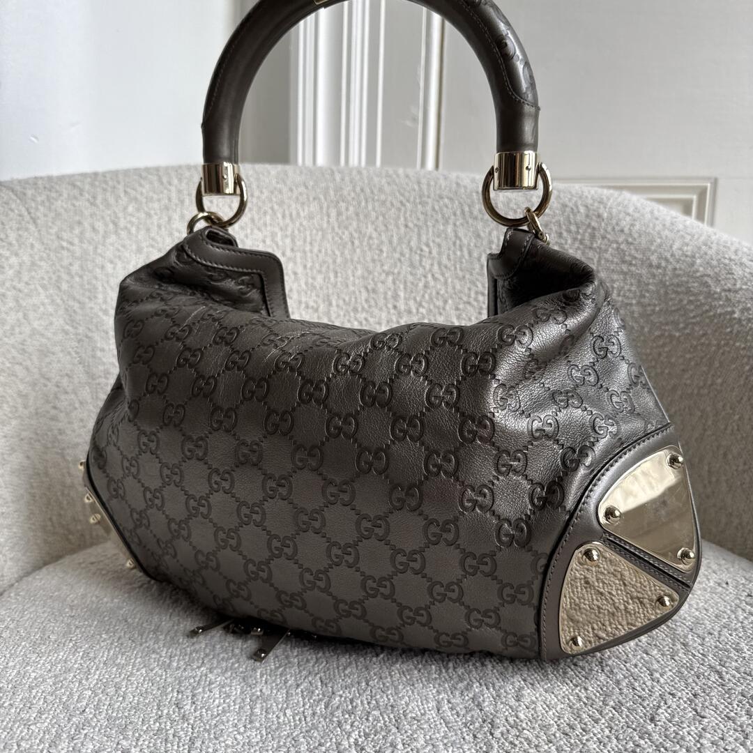 Gucci Indy Guccissima Metallic Silver Leather Shoulder Bag