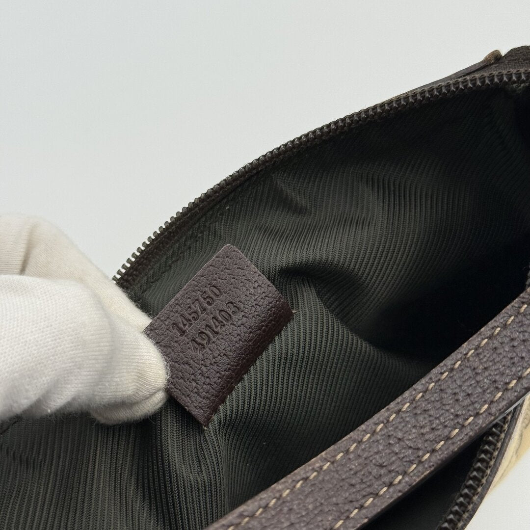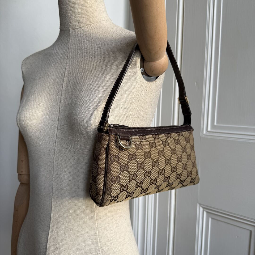 This Gucci Mini Abbey D Ring Brown Shoulder Bag is crafted from luxurious brown leather and features gold hardware with Gucci engraving. This chic bag is both functional and stylish with its beige canvas and GG monogram design. The zip up compartment adds a touch of convenience to this must-have accessory.
