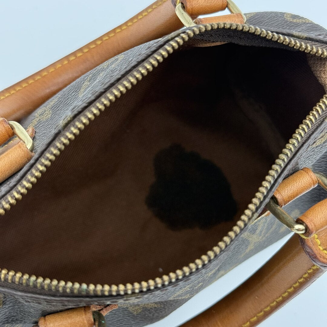 Louis Vuitton Monogram Nano Speedy Bag M41534, is expertly crafted with monogram coated canvas and Vachetta leather. The zip up compartment keeps your belongings secure while the iconic Louis Vuitton monogram adds a touch of elegance. Perfect for those looking for a classic and functional mini designer handbag.