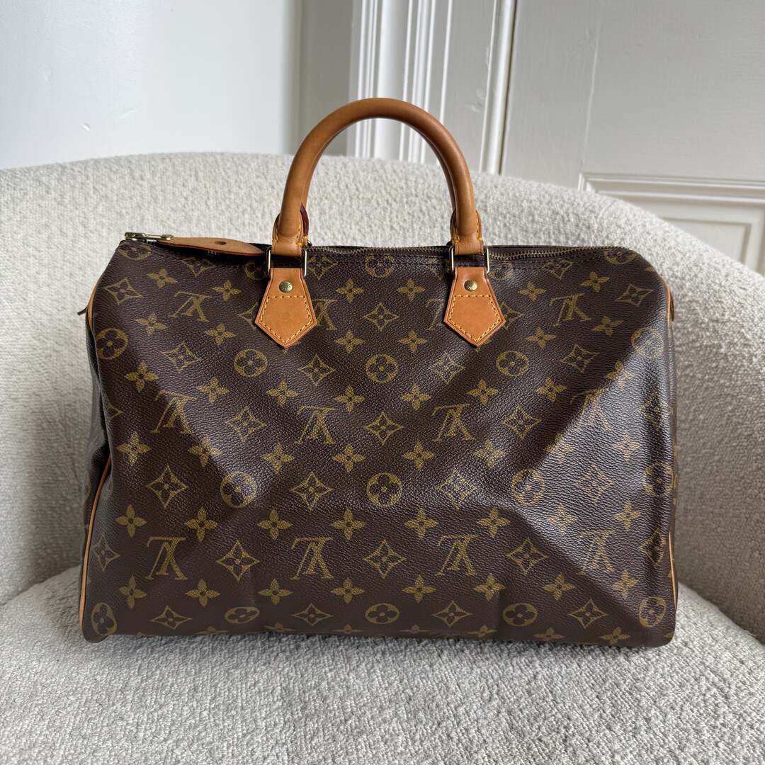 Expertly crafted from the finest materials, the Louis Vuitton Monogram Speedy 30 Handbag is a timeless and luxurious accessory for any wardrobe. With its iconic monogram coated brown canvas and vachetta leather, this handbag exudes elegance and sophistication. The zip up compartment and gold hardware add functionality and style, while the Louis Vuitton engraving on the leather and included LV padlock and keys showcase the brand's impeccable craftsmanship. Elevate your look with this iconic piece.