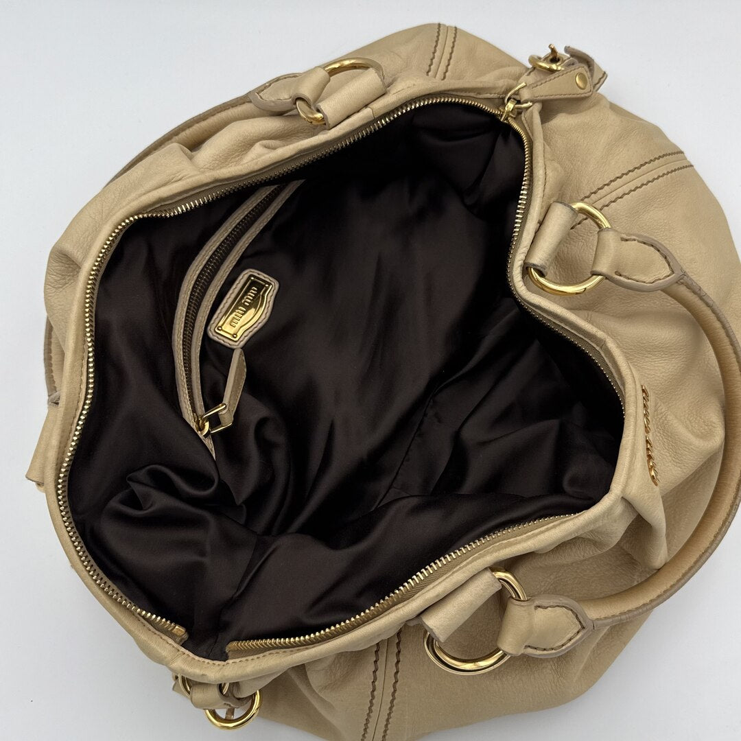 Miu Miu Hobo Leather Beige Shoulder Bag