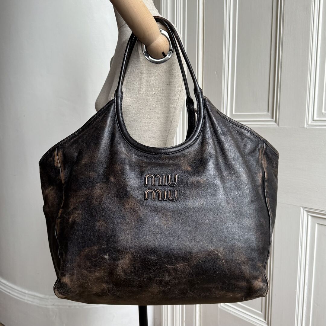 Miu Miu Ivy Coffee Leather Tote Bag
