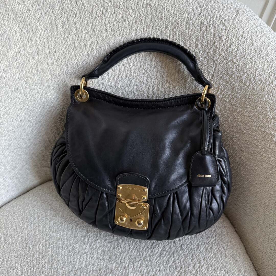 Miu Miu Matelasse Leather Black Shoulder Bag