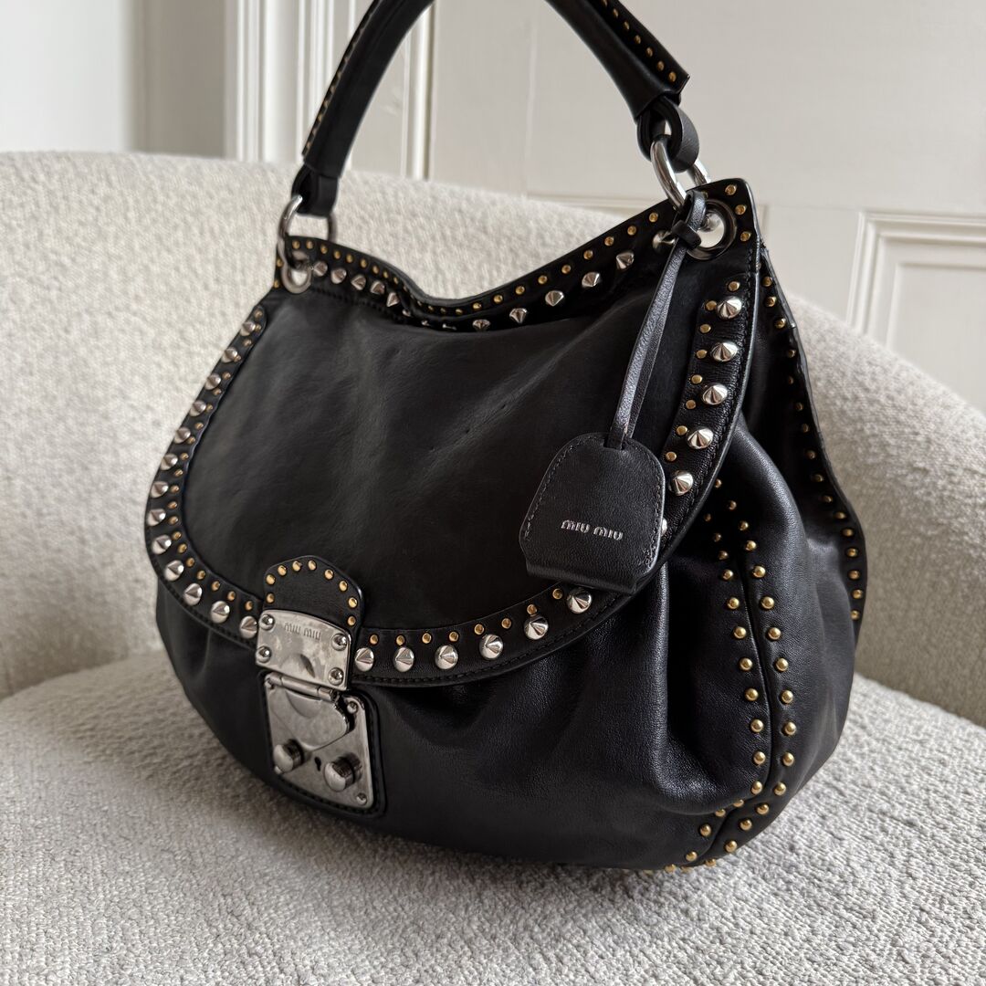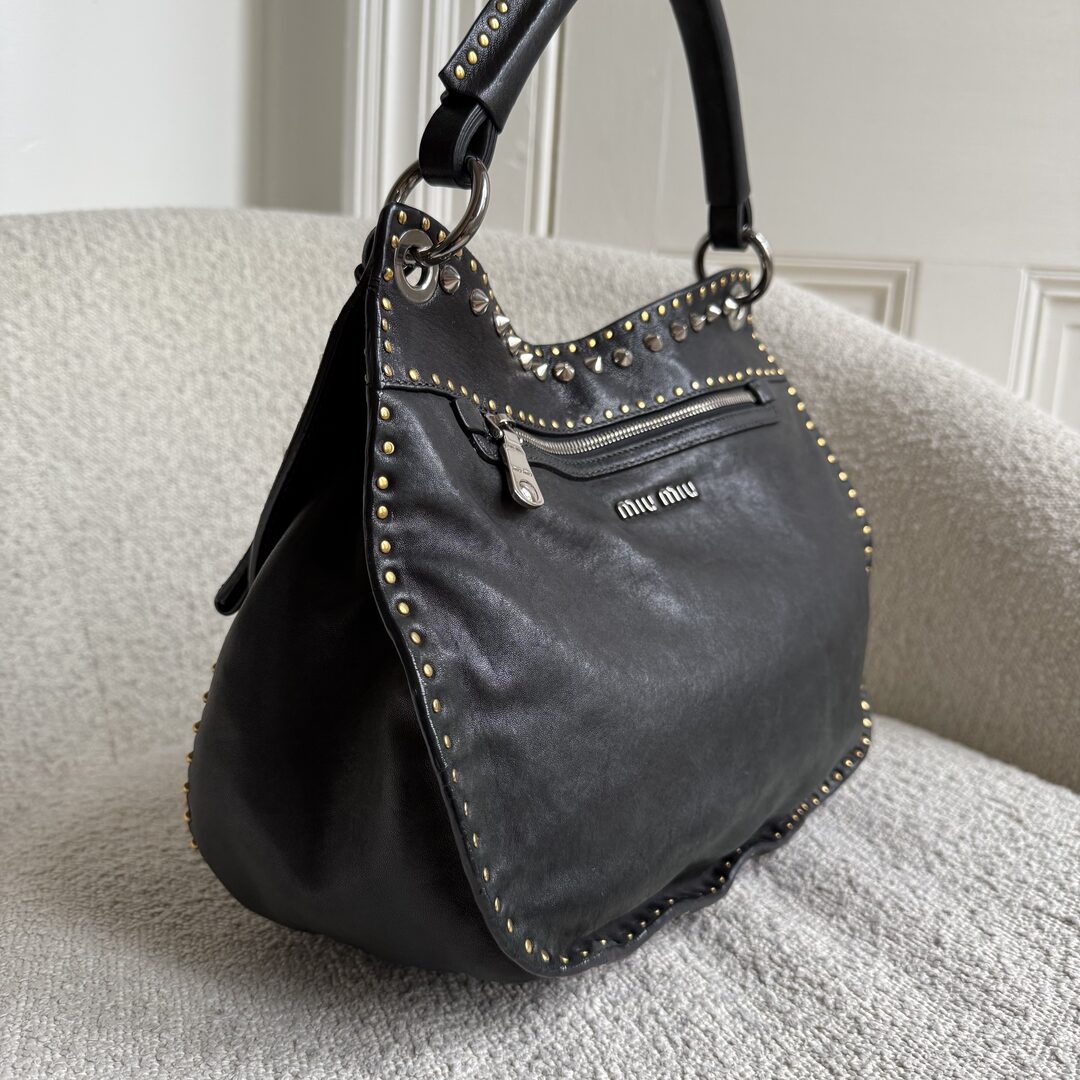 Miu Miu Studded Leather Black Handbag